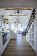 “The primary reason why I relocated here was because I had a granddaughter, and I now have a second granddaughter who’s four months old,” Martin tells Fortune. Luckily her son-in-law, Bijan Taherkhan, just so happened to own his own micro-home business: Spindrift Tiny Homes. And with enough room on the family’s property in Bend, Oregon to fit another structure, Taherkhan built her a custom model suited to her needs: a 10-by-10 foot loft where she sleeps, hovering above a 300-square-foot living space.