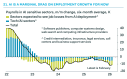 This chart is important because it shows, for the first time, that AI might actually be starting to destroy jobs in sectors sensitive to AI replacement, according to Pantheon Macroeconomics’ Samuel Tombs. Those sectors are in tech and admin. It comes from Pantheon’s April U.S. chartbook. The caption says, “AI is a marginal drag on employment growth for now.” The previous month it said, “AI is not replacing many people’s jobs yet.”